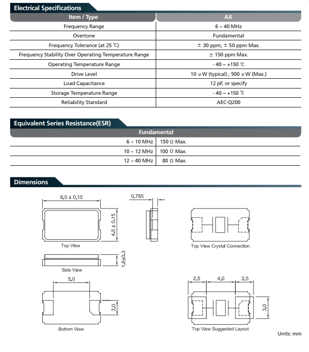 1. 可靠的Glass玻璃密封陶瓷封裝,尺寸8.0×4.5×1.6mm