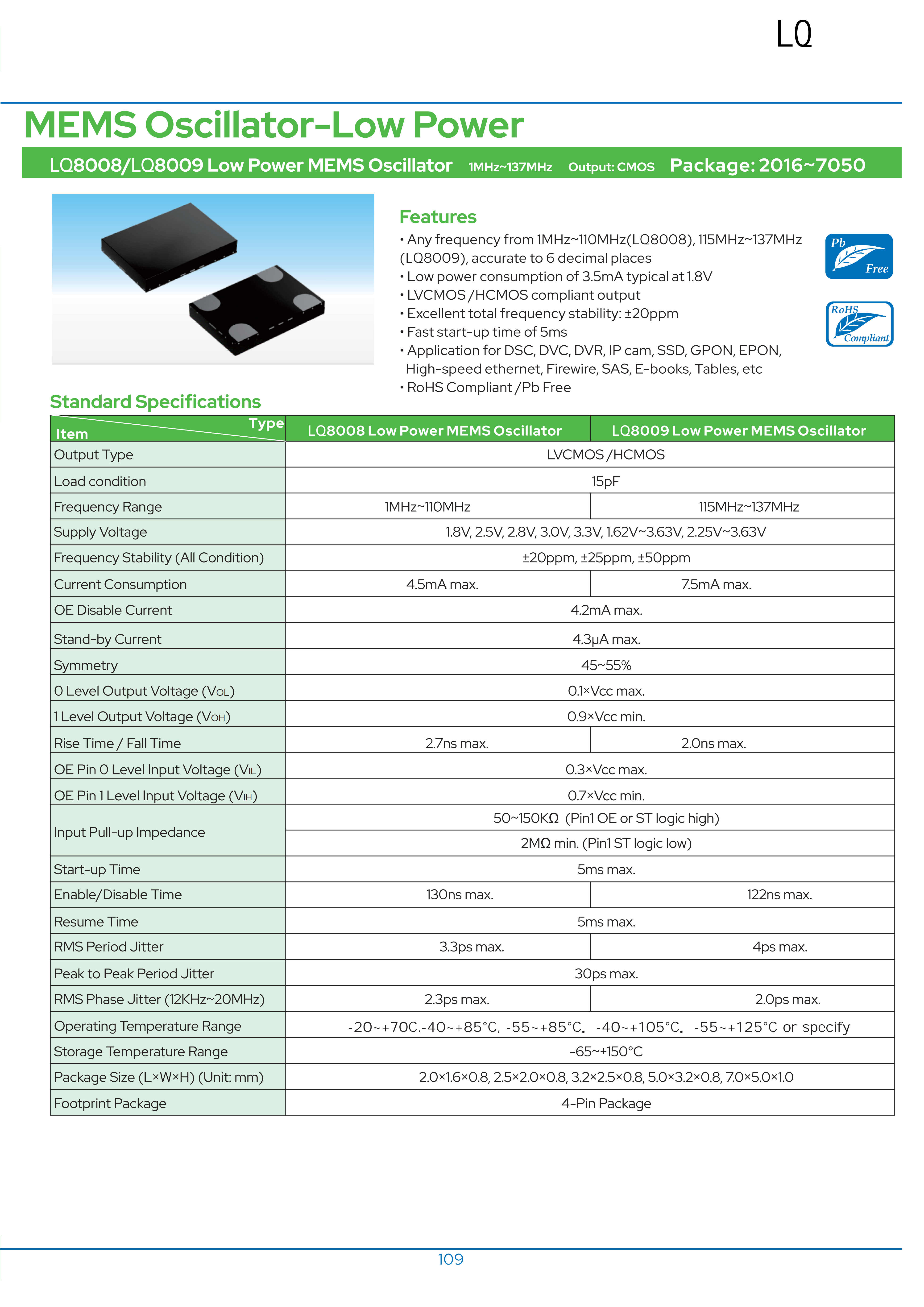 LQ8008低功耗MEMS振蕩器