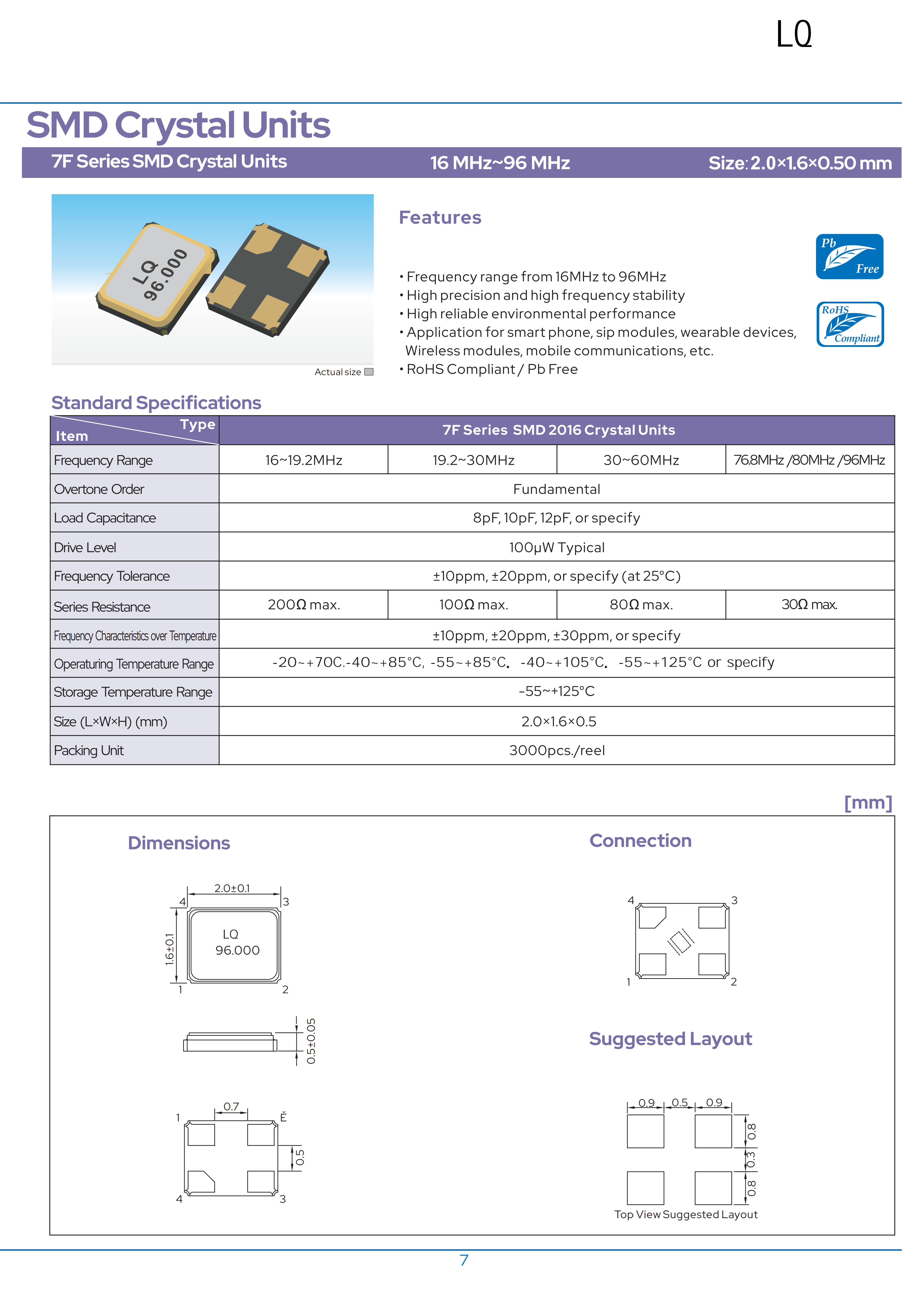1、超小尺寸,貼片金屬封裝,尺寸為:2.0×1.6×0.35mm。