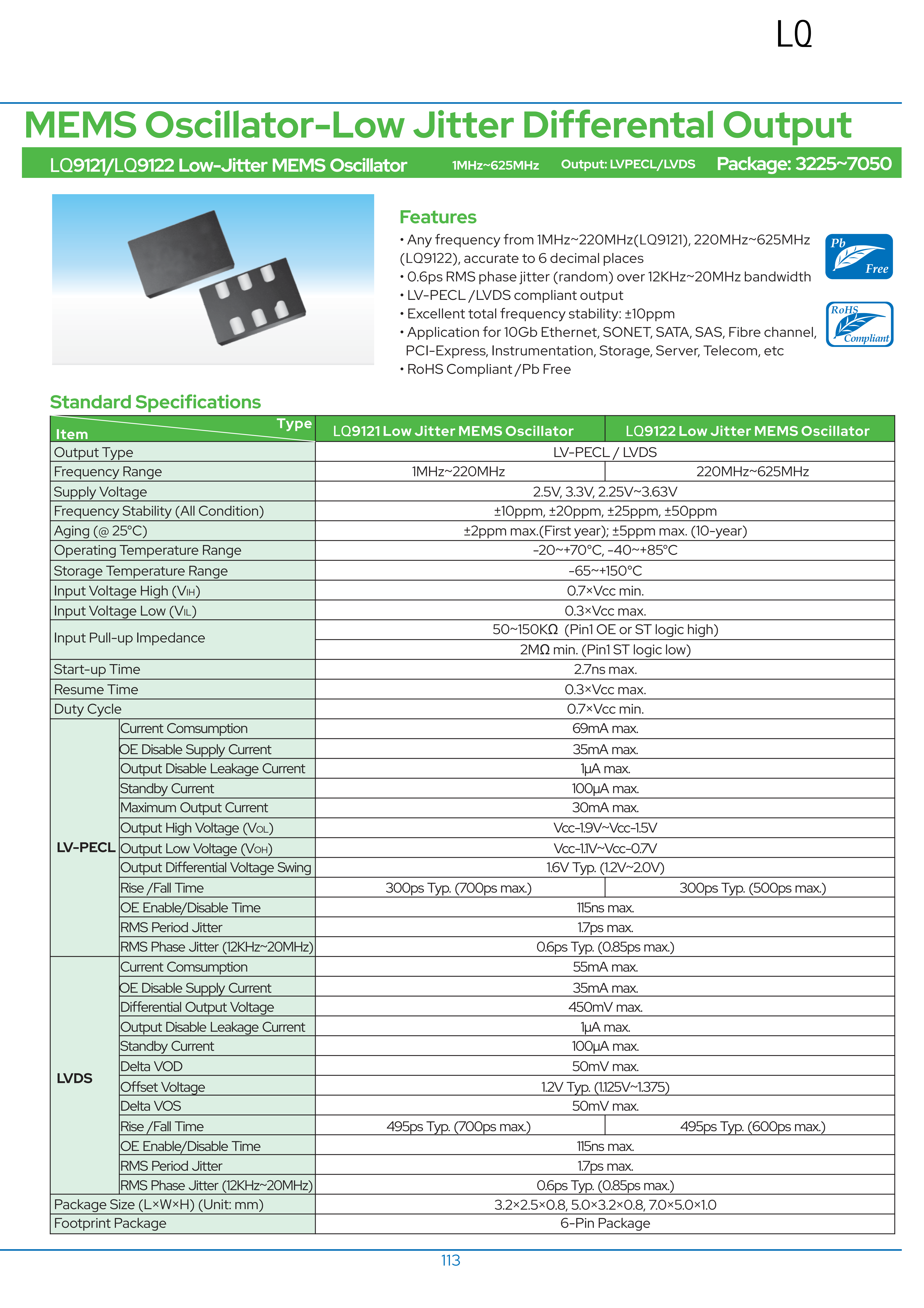 1. 采用標(biāo)準(zhǔn)貼片6針?lè)庋bMEMS差分振蕩器:3.2×2.5(3225),5.0×3