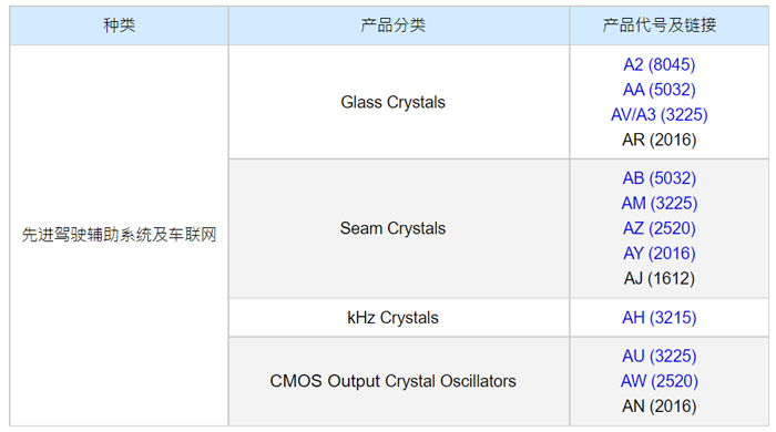 隨著先進輔助駕駛系統(tǒng) (ADAS)、胎壓偵測器 (TPMS)、及車用信息娛樂系統(tǒng)的普及化,車用頻率組件同時追求”零缺陷”。臺灣晶技TXC提供完整的車用石英晶體諧振器及振蕩器產品線,經過嚴格的品管,以提供最穩(wěn)定的產品效能。