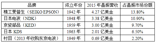 精工愛(ài)普生公司(Seiko Epson Corporation)是全球頂尖的貼片晶體振蕩器、諧振器制造商;愛(ài)普生拓優(yōu)科夢(mèng)(Epson Toyocom)將進(jìn)一步究極用精微加工發(fā)揮“石英”材料的優(yōu)越性能的“QM”技術(shù),創(chuàng)造出體積更小、更高性能或全新功能的電子元器件,晶振年銷(xiāo)售額達(dá)10億,其晶振銷(xiāo)量在2011年屬全球第一;愛(ài)普生晶振以32.768KHZ晶振稱(chēng)霸晶振行業(yè),主要消費(fèi)在手機(jī),PCB,等電子產(chǎn)品。同時(shí)愛(ài)普生以提供原子鐘的精準(zhǔn)振蕩器知名業(yè)界。愛(ài)普生晶振在KHZ、MHZ、以及GHZ上都有重大突破,使得愛(ài)普生拓優(yōu)科夢(mèng)的晶體元器件已以23%的市場(chǎng)占有率位于業(yè)界第一。