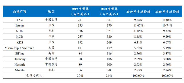 2020年,全球前 10大晶振廠商合計占據(jù) 63.86%的市場份額,市場集中度較高,日本晶振廠商以近一半的市場份額處于主導(dǎo)地位。