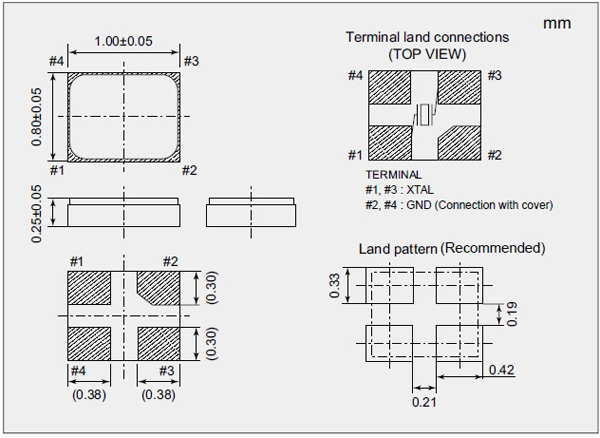 NX1008AA晶振外形尺寸: