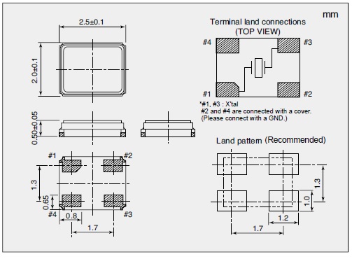 小型、薄型 (2.5×2.0×0.5mm) 。