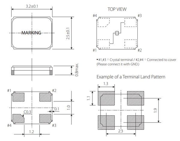 SX-3225貼片晶振外形尺寸: