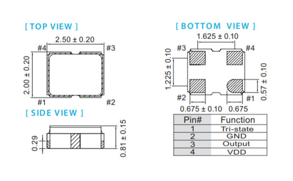 Typical 2.5×2.0×0.81mm Ceramic SMD Package